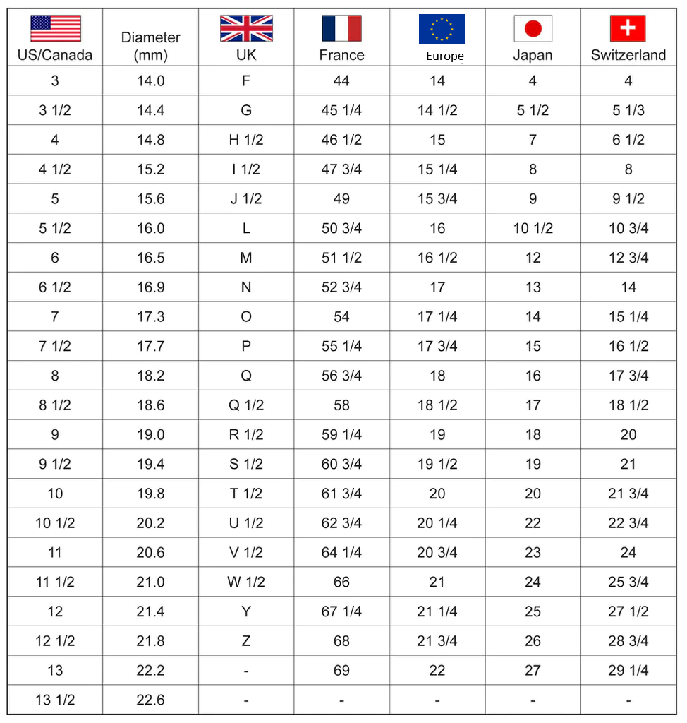 - Use the below chart to determine your ring size.